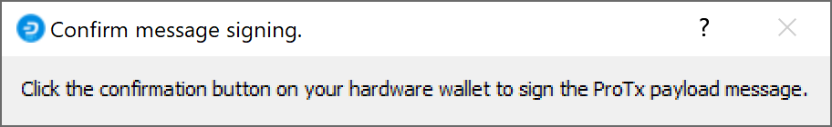 tx: The serialized transaction previously returned in thetxoutput field from theprotx register_preparecommandsig: The message signed with the collateral key from thesignmessagecommand