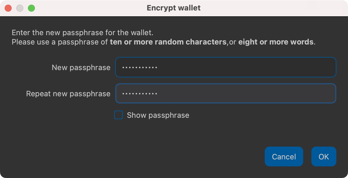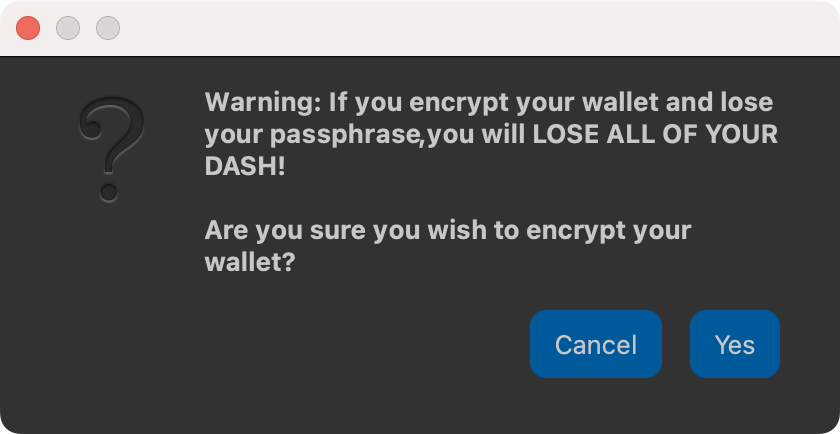 The following section will detail the steps you need to follow if you choose to encrypt your Dash wallet later.
