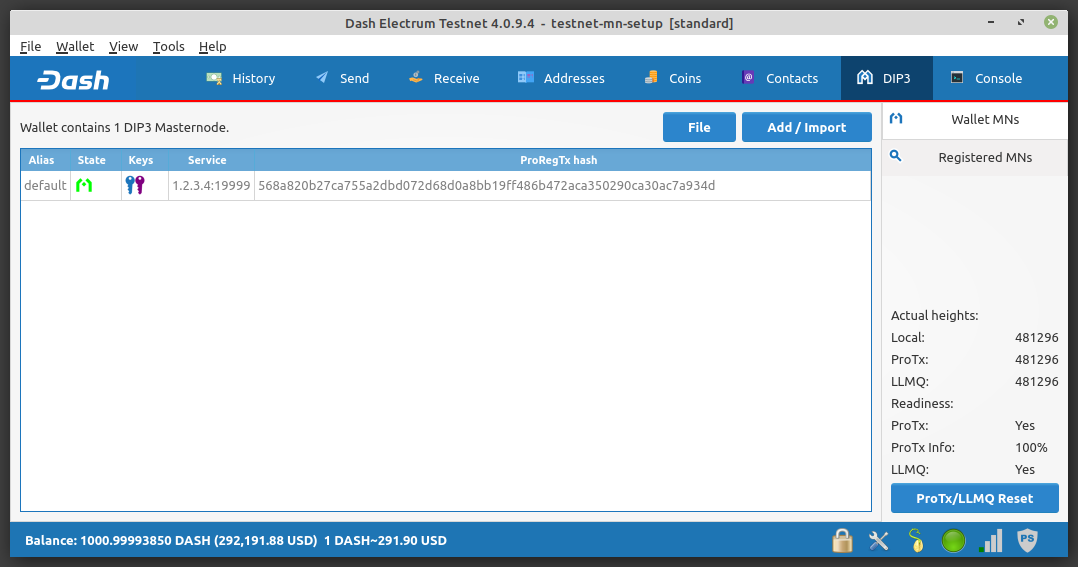 dash.conf file on the masternode. Electrum will provide a notification